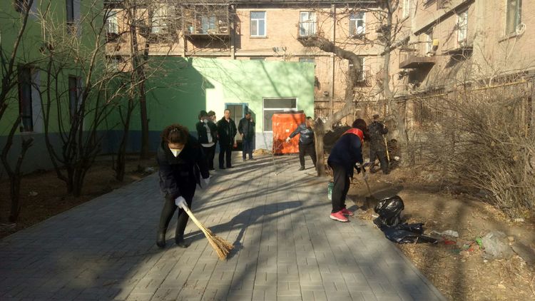看安馨養(yǎng)老服務(wù)中心后院里參加清掃衛(wèi)生的青年團(tuán)員志愿們拿著笤帚、鐵鍬、鋸等用具。開始了緊張的忙碌,鋸枯樹枝的,清掃院落的,清倒垃圾的,大家分工合作,經(jīng)過了一上午的清掃整理,整個院落更加的干凈整潔了。