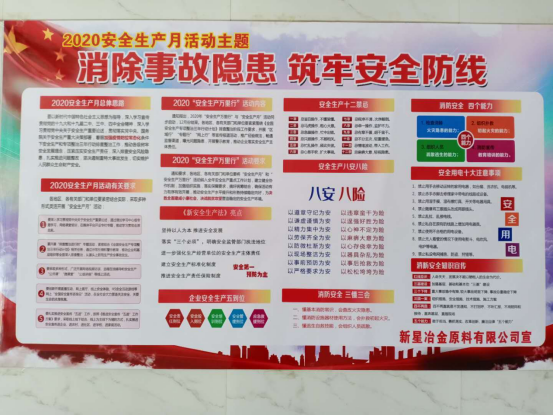 為響應(yīng)國家安全生產(chǎn)月活動,根據(jù)鋼興集團公司《關(guān)于開展2020年“安全生產(chǎn)月“活動的通知》要求,新星公司緊緊圍繞“消除事故隱患、筑牢安全防線”的活動主題。結(jié)合新星公司安全工作實際情況,以加強安全意識,提高安全素質(zhì)為著力點,深入開展安全月各項措施,安環(huán)部利用宣傳橫幅、張貼安全標語、標志標牌、LED電子顯示屏滾動播放相關(guān)安全知識和標語口號、網(wǎng)絡(luò)學習“血的教訓”事故案例等多種形式廣泛宣傳。